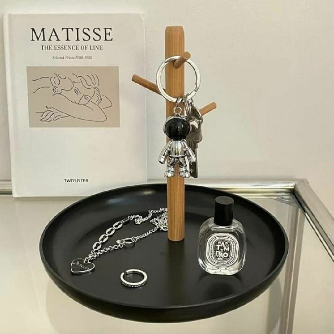 Bien plus qu’un Rangement Clé, ce plateau accueille aussi vos bijoux, montres et petits accessoires avec élégance. Les creux naturels empêchent les objets de s’emmêler ou de tomber.